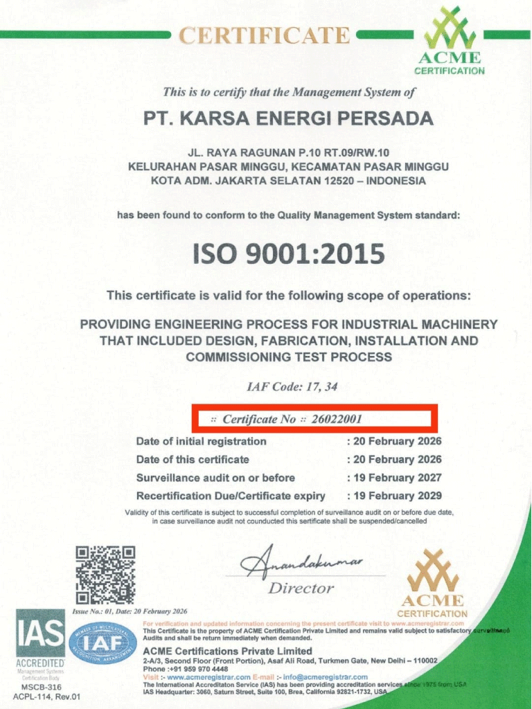 PT KARSA ENERGI PERSADA bertujuan untuk memberikan kepuasan total kepada klien memalui pengalaman, ide-ide, dan inovasi